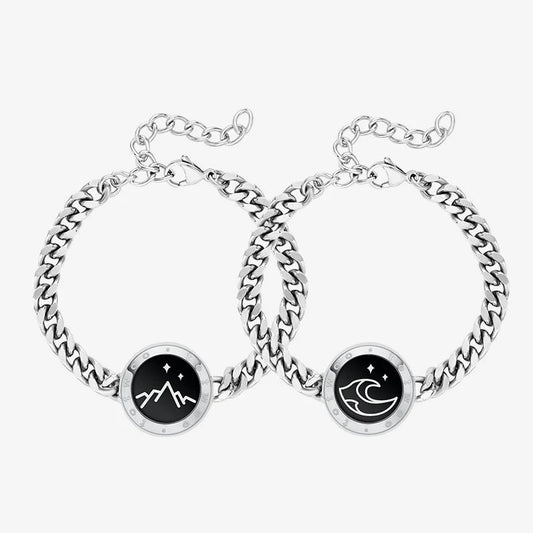 Mountain&Sea Touch Bracelets with Cuban Chain(Silver+Silver)